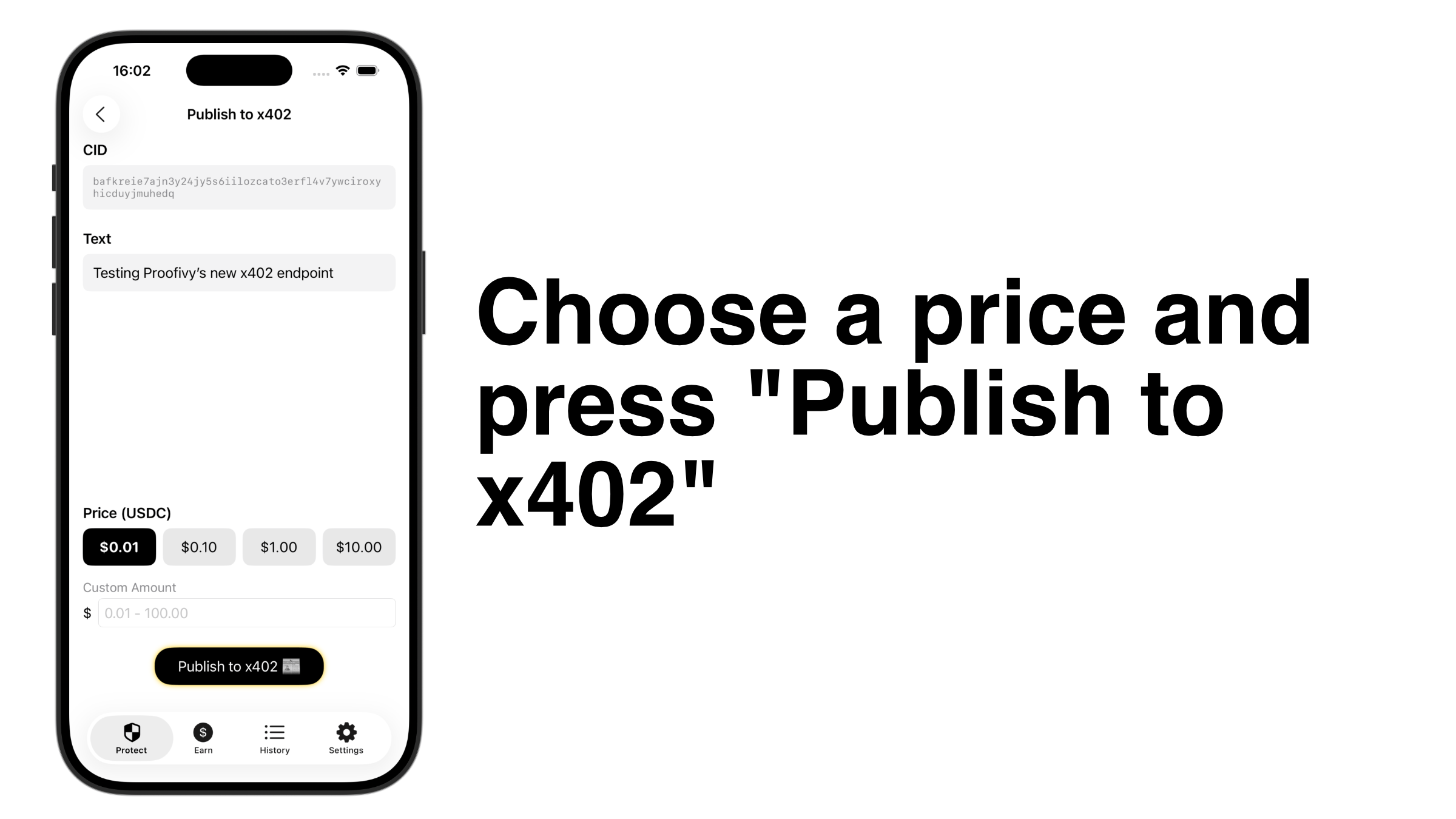 Proofivy now lets you publish directly to our x402 endpoint from your iPhone. Here’s how to do it in just a few steps.